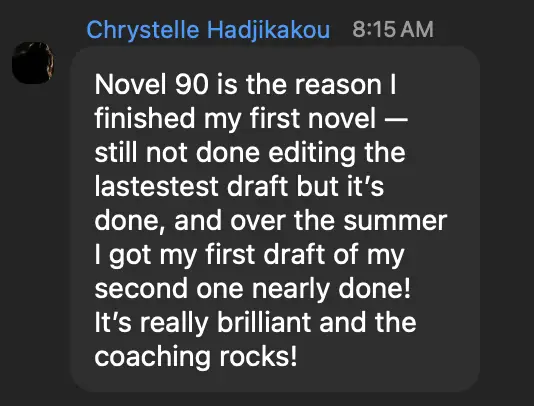 The best things about Novel 90, the coaches were always positive and encouraging and quick to answer questions. The platform that analyzes everything is a great learning tool allowing me to learn if I am hitting my marks for Genre, Tropes, consistency, marketing. plot holes, something I never knew how to check before. All that Analyzer information without having to pay thousands for a coach! And not just getting my writing fixed but learning how to fix my writing.