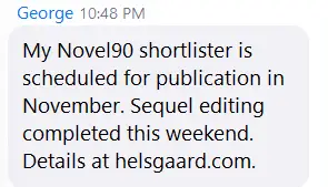 Thanks to the Novel90 Challenge and the phenomenal support team and coaches that come with it, I will soon be a published novelist!