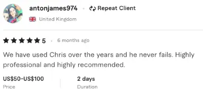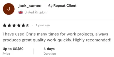 I have used Chris many times for work projects, always produces great quality work quickly. Highly recomended!