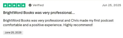 BrightWord Books was very professional and Chris made my first podcast comfortable and a positive experience. Highly recommend!