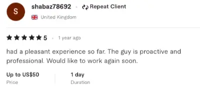 had a pleasant experience so far. The guy is proactive and professional. Would like to work again soon.