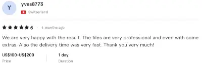 We are very happy with the result. The files are very professional and even with some extras. Also the delivery time was very fast. Thank you very much!
