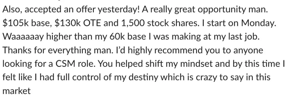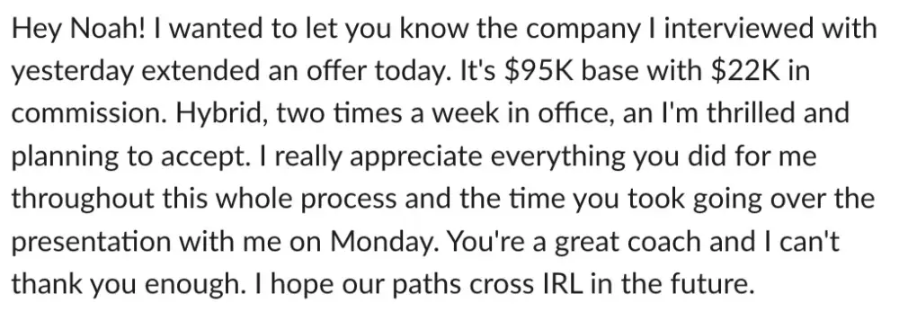 The coaching program led by Noah Little and his team has received overwhelmingly positive testimonials from participants who have greatly benefited from their services. Many clients expressed that they transformed their job search experience from frustrating and unproductive to successful and rewarding. The personalized coaching helped them enhance their resumes, improve interviewing skills, and instilled confidence in their job search abilities. Several testimonials highlight clients landing high-paying remote positions and receiving multiple job offers after working with Noah. They appreciated the structured and supportive approach of the program, the accessibility of coaching, and the genuine investment Noah and his team brought to each individual's journey. The coaching not only improved their job prospects but also instilled a more positive mindset towards the job search process, making it a worthwhile investment. Participants highly recommend Noah's coaching services to anyone struggling with job hunting or seeking to advance their careers.