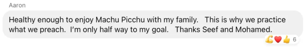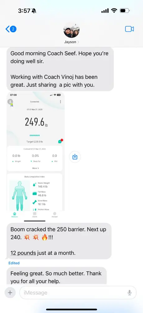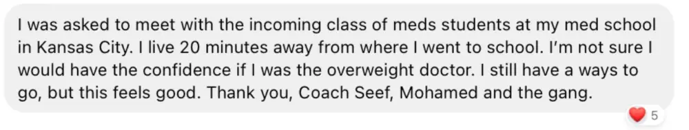 Coach Seef was easygoing, straightforward, and kept everything simple. No fluff, no overcomplicated plans — just clear instructions that worked. The workouts were efficient and realistic for a busy physician like myself