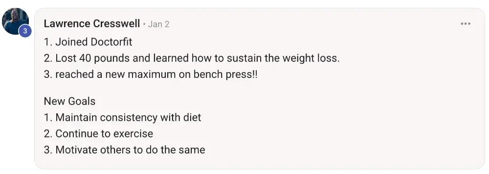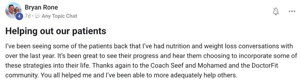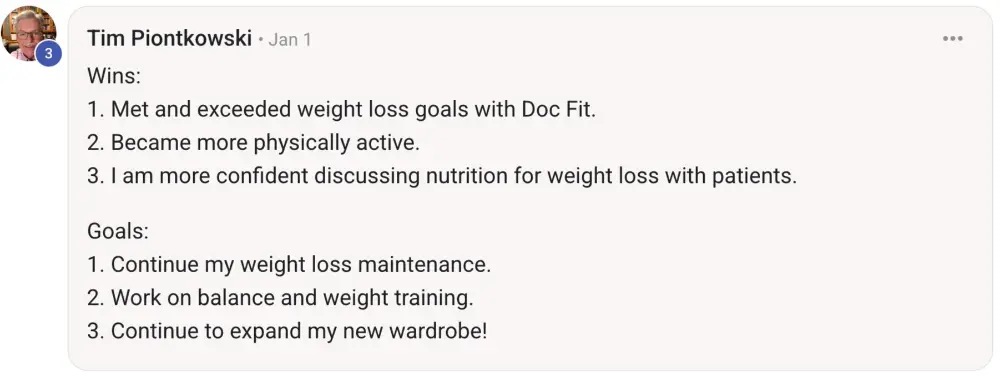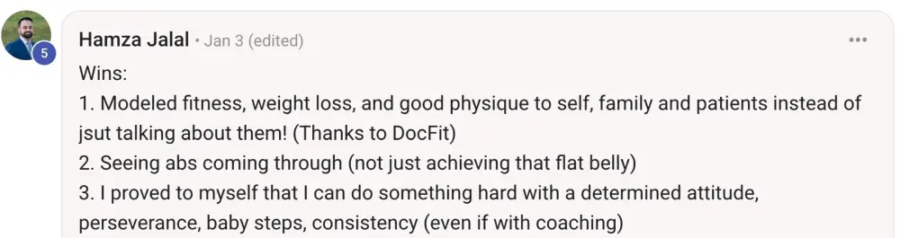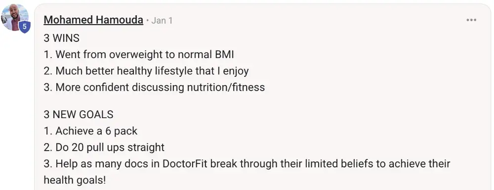 i think as doctors, we know the theory. what we need to really get our goals is practicality - this program provides that: accountability, coaching, knowledge.