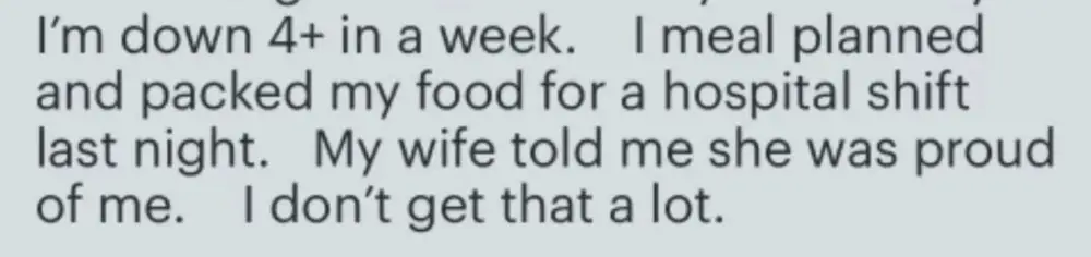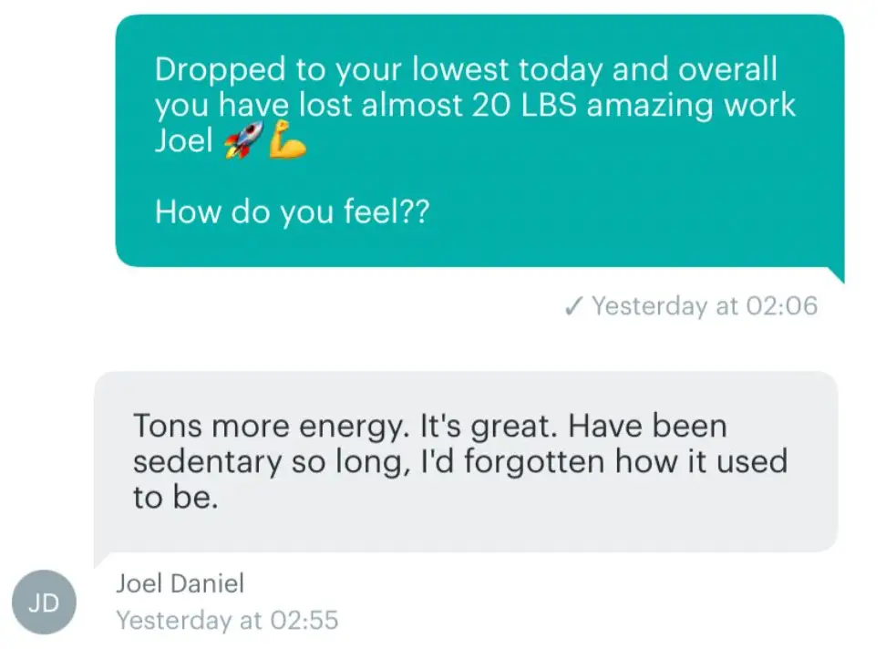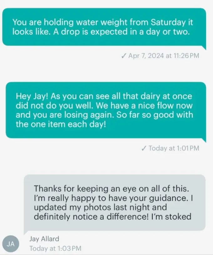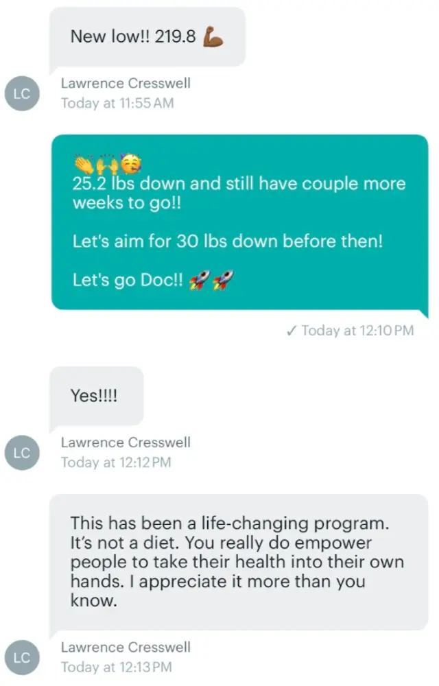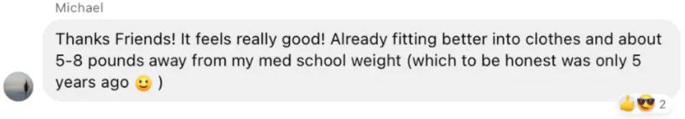 Best decision/investment I've ever made. I have struggled with weight loss since I was in 5th grade. I have been successful before but not like this and not since med school. The coaches are fantastic and if you are motivated there is no way to not be successful! I am down 80 pounds and plan to hit my 100 pound goal within a year of starting the program.