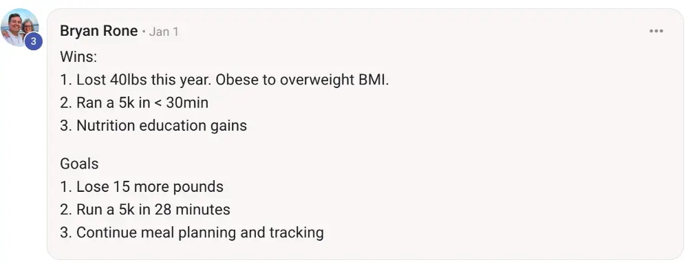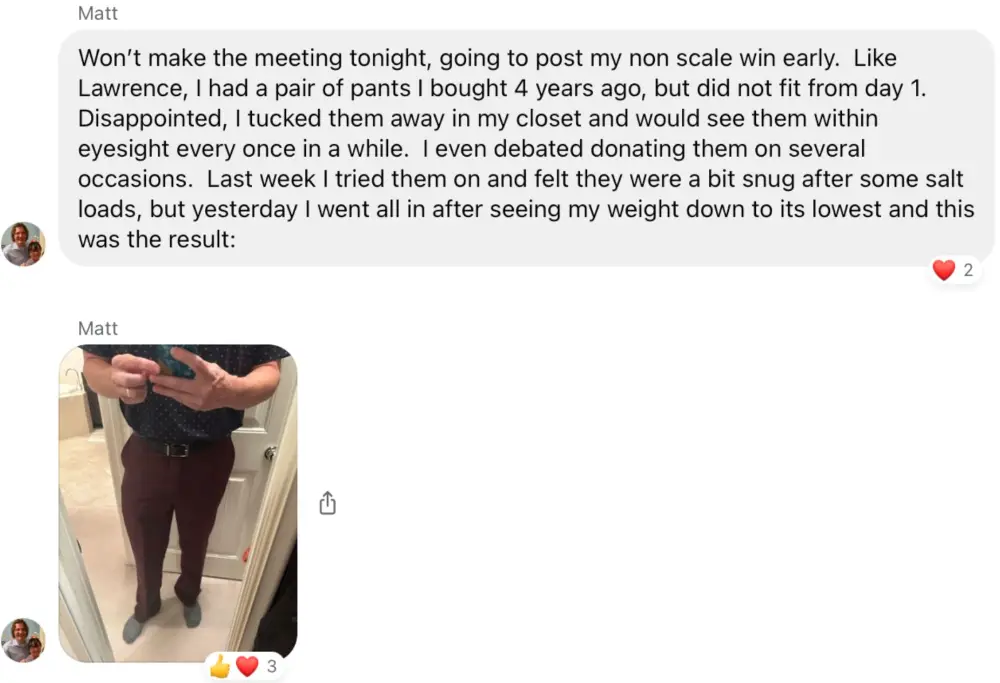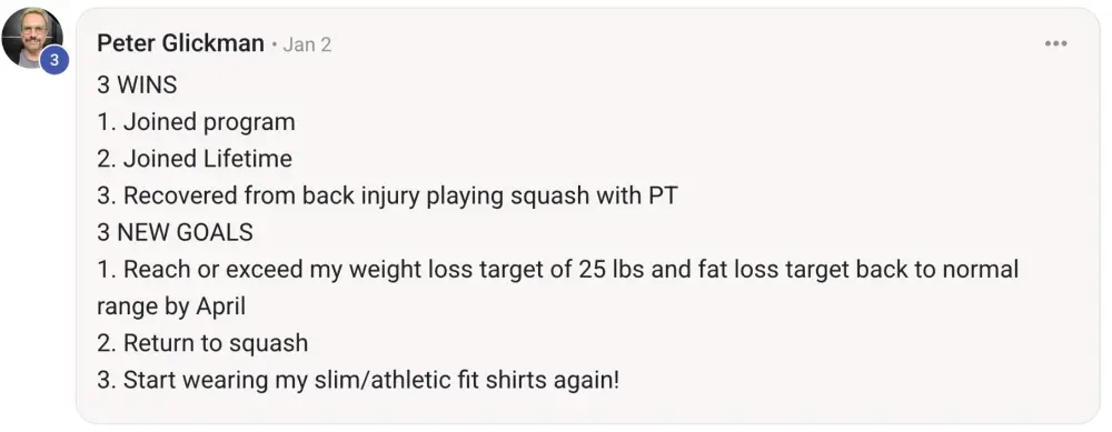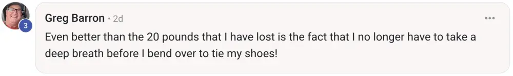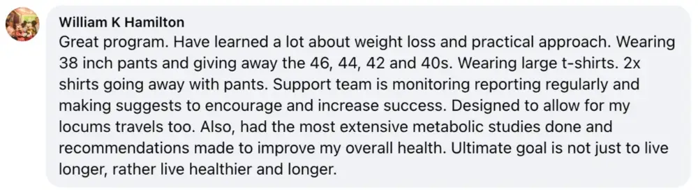 This program works and the coaches deliver on what they promise. The program focuses on improving your health span through nutrition, activity, and mindfulness. It is well structured and accountability is built in. The coaches are there to give feedback, support, encouragement, and some tough love when you think you’re not making progress. No injections needed for success. Purposeful choices, education, support, and accountability are the natural ingredients for success.
