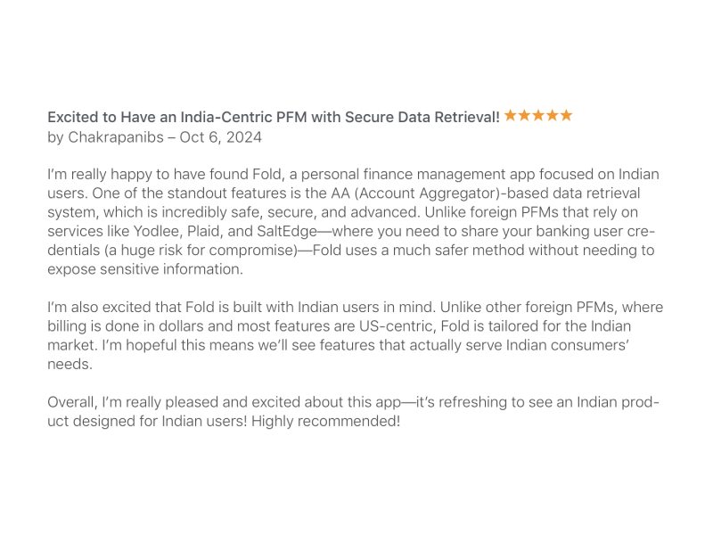 In a space where apps increasingly creep in random useless updates pushed by feature-hungry PMs, @foldmoney_ feels like a Sunday morning breeze at Cubbon park