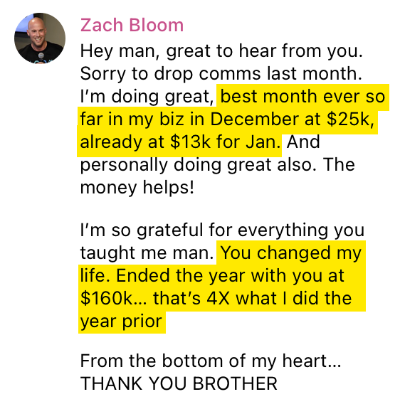 "Started signing $3000 coaching clients online."