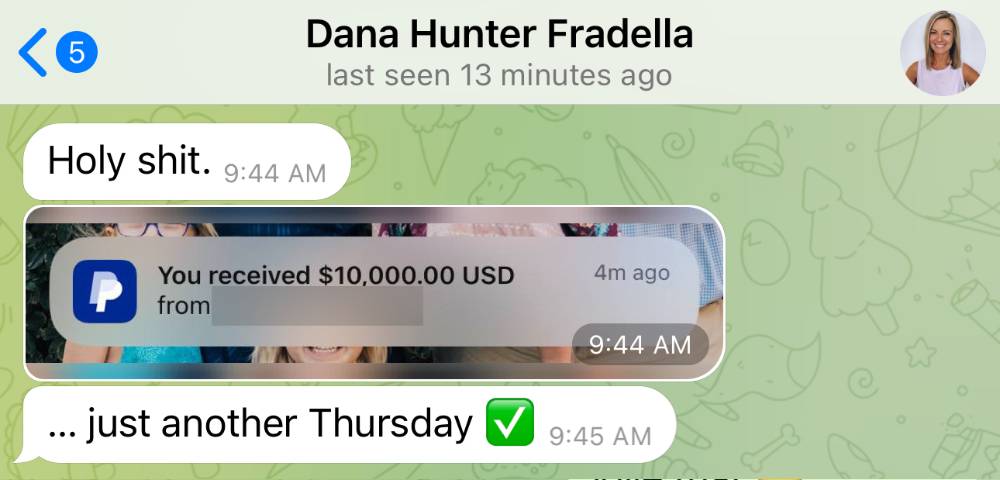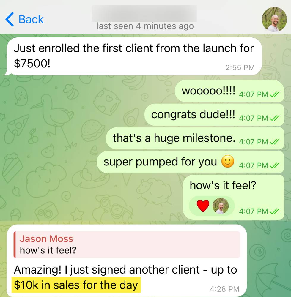 "Hit her first 15k month, left her job and went full time as a coach."