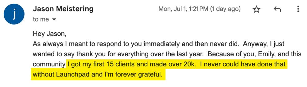 "Quit his job, launched his retreat biz and signed his first $7400 client."