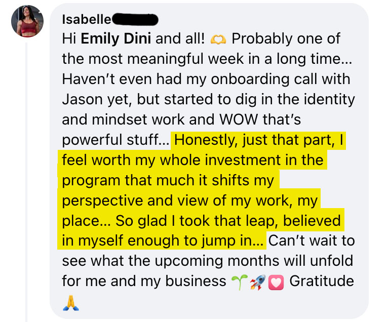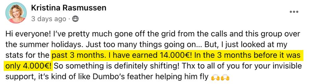 "Hit her first 15k month and started signing 1 - 2 ideal clients every week."