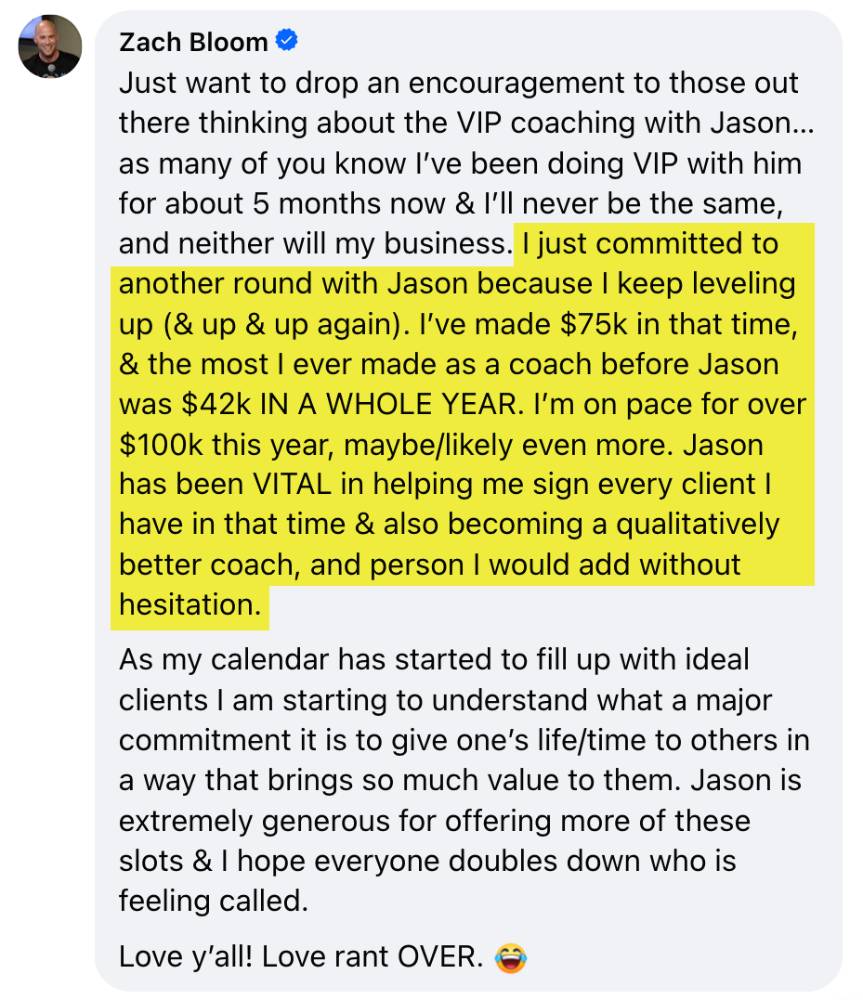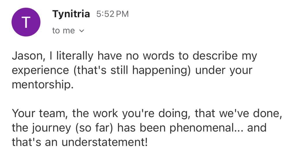 "Coaching with Jason was a life-changing experience."