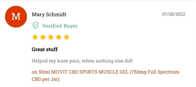I just smashed my finger and Muvit CBD Sports Gel came to the rescue. I was closing a TV try and the table-top closed on my middle finger - I hadn’t hurt myself that way in a long time. Feeling the pain rush to my finger the first thing I thought of was slavering on, Muvit, before it got worse. Within moments the pain disappeared and I was able to move on with my day with minimal bruising.
