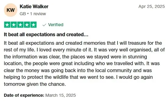 Our trip to Uganda was an amazing experience that far exceeded my expectations. Uganda is a varied, wonderful country with lovely people and packed with wildlife. Our tour was very well organised and our guide, Innocent, was very knowledgeable about the country, animals and birds and he was great company. We stayed in some great safari lodges which were a much higher standard than I’d expected. I particularly liked the shower with a view of the mountains in Bwindi and the bathroom looking out on trees full of birds in the Queen Elizabeth National Park. We shared our campfire with a group of hippos, walked amongst chimpanzees and spent an unforgettable time with a troup of mountain gorillas in the Bwindi Impenetrable Forest. We also enjoyed visiting local villages and a school, finding out about village life and learning about local enterprises. We were warmly welcomed everywhere we went. It was a truly unforgettable trip.