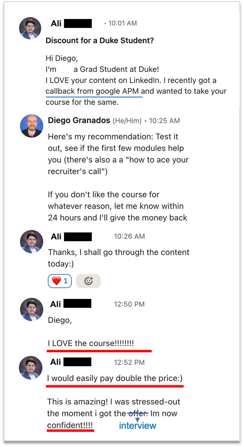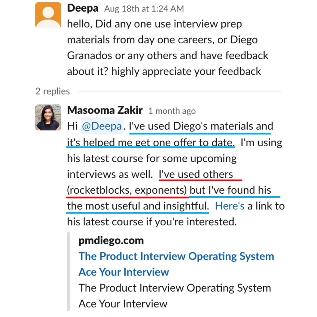 I just landed a Sr. PM Offer! Many thanks to Diego for this course which gave me the structure I needed to prep for my interviews.