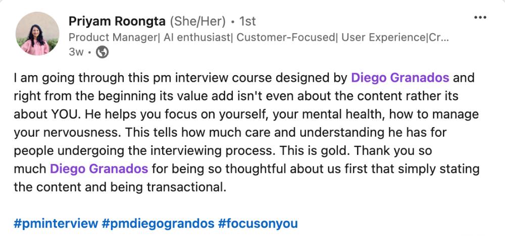 I highly recommend this course to all PMs, not just for interview preparation, as it provides invaluable insights into Product Management.