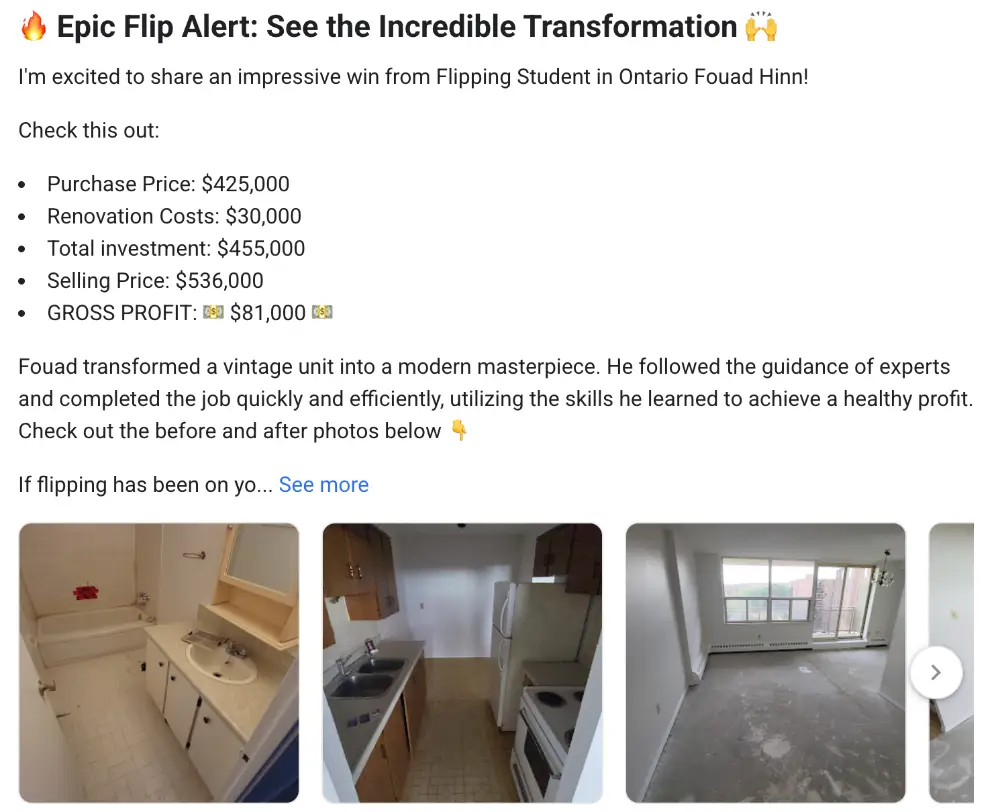From renos (done in 12 business days) to raising capital, every part of this deal was made possible because of the tools, support, and mindset instilled by Rick and the RED team.