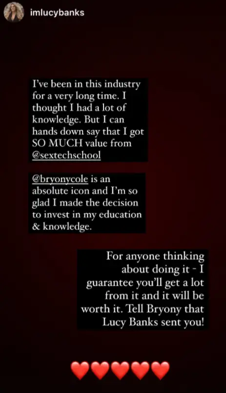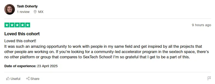 Sextech School, led by Bryony Cole, has received overwhelming praise from graduates for its transformative impact on their careers in the sextech industry. Customers enthusiastically shared their experiences of unparalleled learning, networking, and community building that this program offers. Many noted how the course equipped them with the tools and insights necessary for launching their own ventures in sexual health and technology. Whether you are looking to explore innovative ideas or simply wish to connect with like-minded individuals, Sextech School appears to provide an invaluable resource. The sentiment across all testimonials is incredibly positive, with participants expressing gratitude for the supportive and inclusive environment that fosters creativity and collaboration. Many alumni feel empowered and excited to bring their insights and new skills into the rapidly growing sextech field, making it clear that Sextech School is an amazing investment for aspiring entrepreneurs.