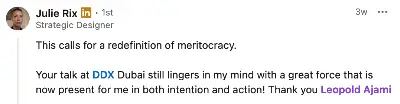 Leopold Ajami has garnered rave reviews as a public speaking, storytelling, and ethical persuasion coach. Countless testimonials highlight his exceptional ability to connect with audiences and elevate presenters from being mundane to captivating. His engaging and thoughtful approach, combining philosophy with practical tools, has led many to experience profound personal transformations. Participants laud the clarity, confidence, and clarity he imparts, empowering them to craft compelling narratives and messages that resonate deeply with listeners. From trainers to jurists, and aspiring public speakers to seasoned professionals, everyone seems to agree that Leopold's coaching transcends standard training—it's a transformative journey that reshapes perspectives and enhances communication skills. With many expressing a desire to work with him repeatedly, it's clear that Leopold’s influence is both significant and enduring.